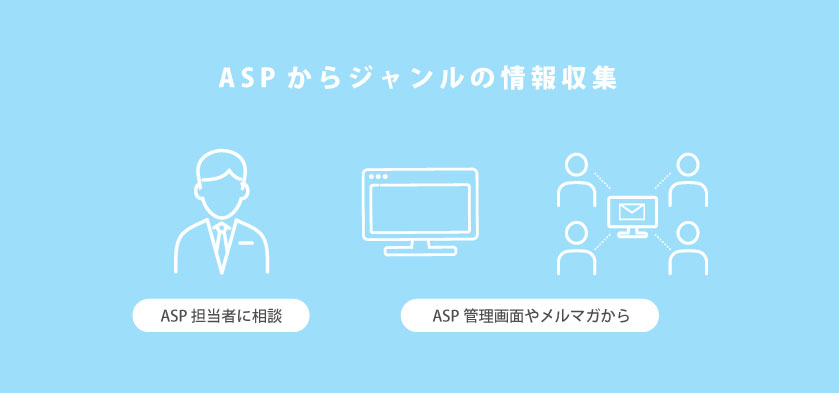 自分の軸がどんなものかわからない場合、ASPからジャンルの情報収集するのも方法の一つです。