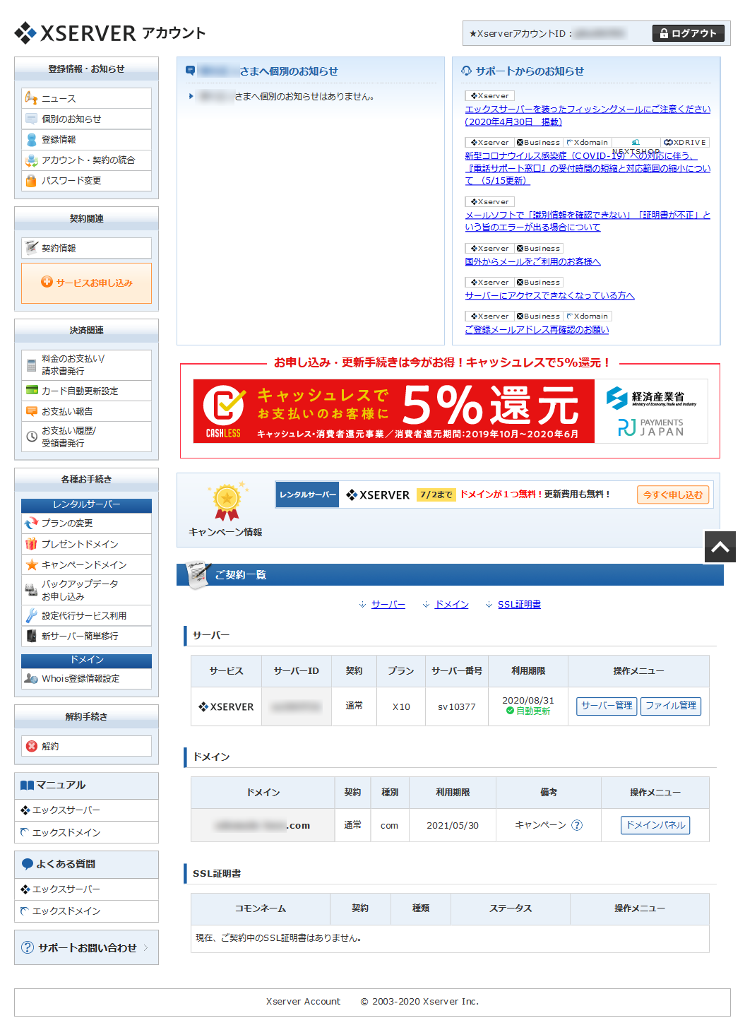 - サーバーの契約期間