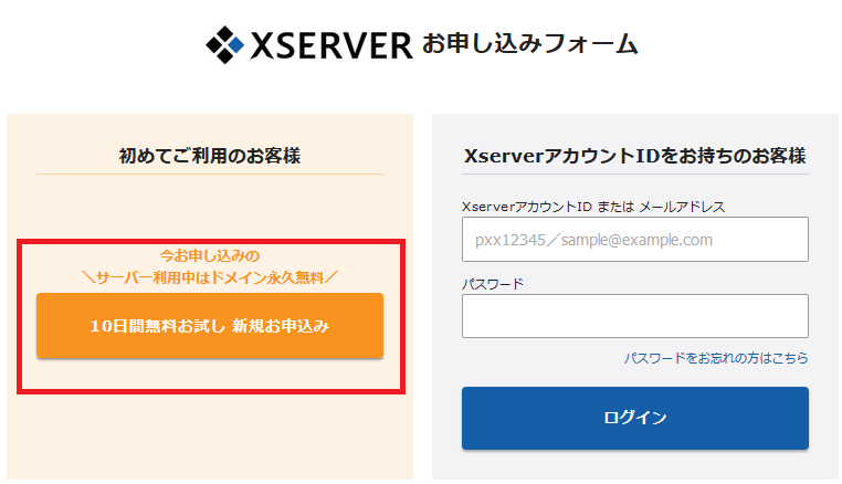 エックスサーバーに申し込む!10日間無料お試しは利用不可!